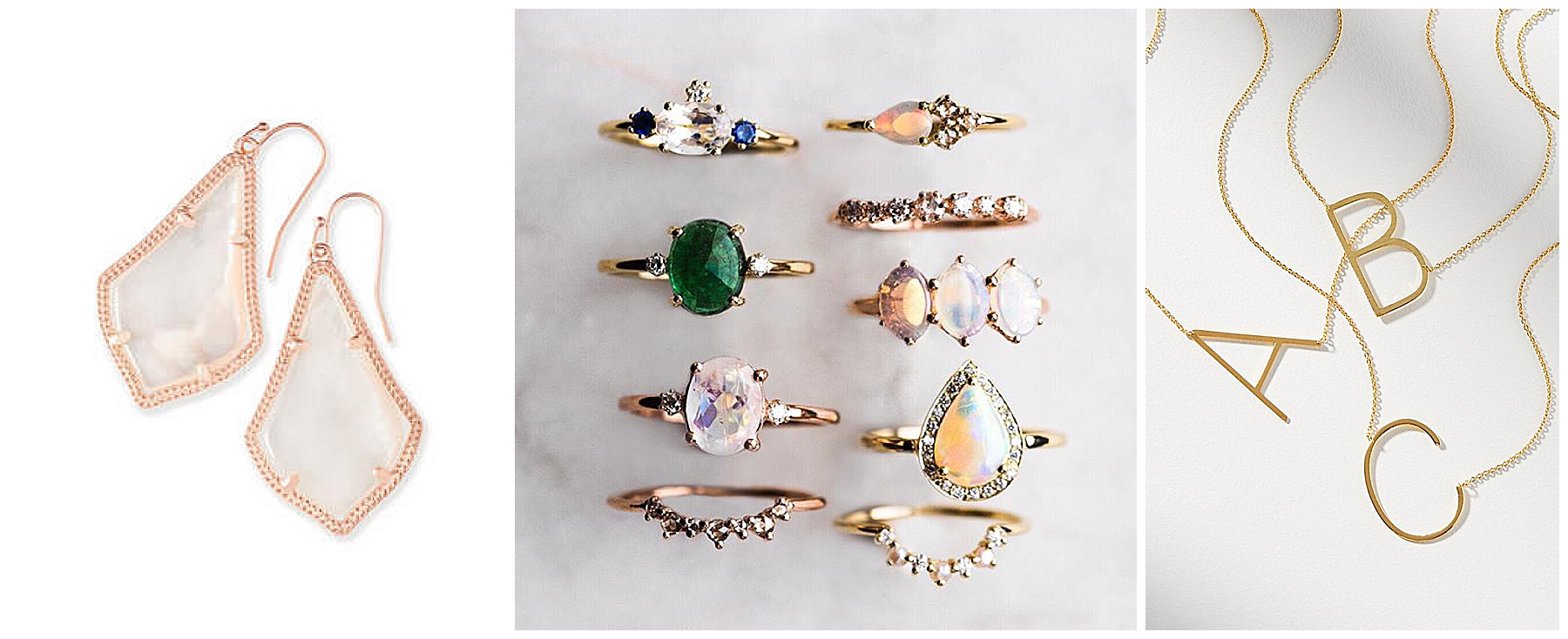 girly! Kendra Scott also has a great selection of trendy jewelry prefect for bridesmaids. Give your girls earrings, a necklace or rings to rock with their dresses for your wedding.